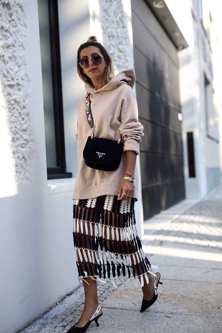 Если раньше при одном упоминании слова «толстовка» рука тянулась к спортивным джоггерам и кроссовкам, то сегодня мы носим их с плиссированными юбками, брюками палаццо и туфлями. Смотрите, что будет в тренде в 2023 году!