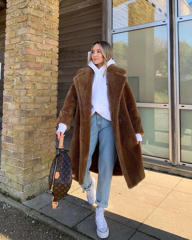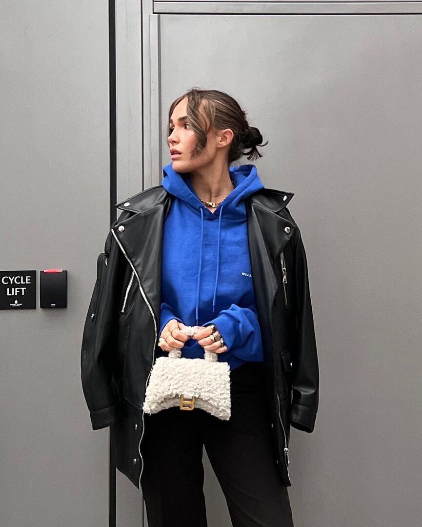 Удлиненные женские худи можно носить в качестве туник и платьев. Зимой предлагаю сочетать их с объемными шубами и пуховиками, кожаными или кашемировыми легинсами. Обувь подойдет любая: как грубые ботинки на тракторной подошве, так женственные ботильоны с острым носом. Весной и летом надеваем модные худи с актуальными кедами и кроссовками, накинув сверху длинный тренч или плащ из кожи. Подобрали Модную обувь в 2023 году: 125 фото трендовых моделей.