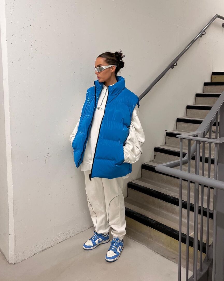 Вы наверняка видели эти модные женские свитшоты в недавних образах хотя бы одной из ваших любимых it girl. Объемные модели с воротником стойкой и молнией до груди стали хитом последних сезонов и точно не потеряют актуальности в грядущем году. Носить их советую сразу с двумя трендами 2023: простой белой майкой и чокером. Просто наденьте свитшот с воротником-стойкой поверх и расстегните молнию — убьете одним выстрелом сразу трех модных зайцев!