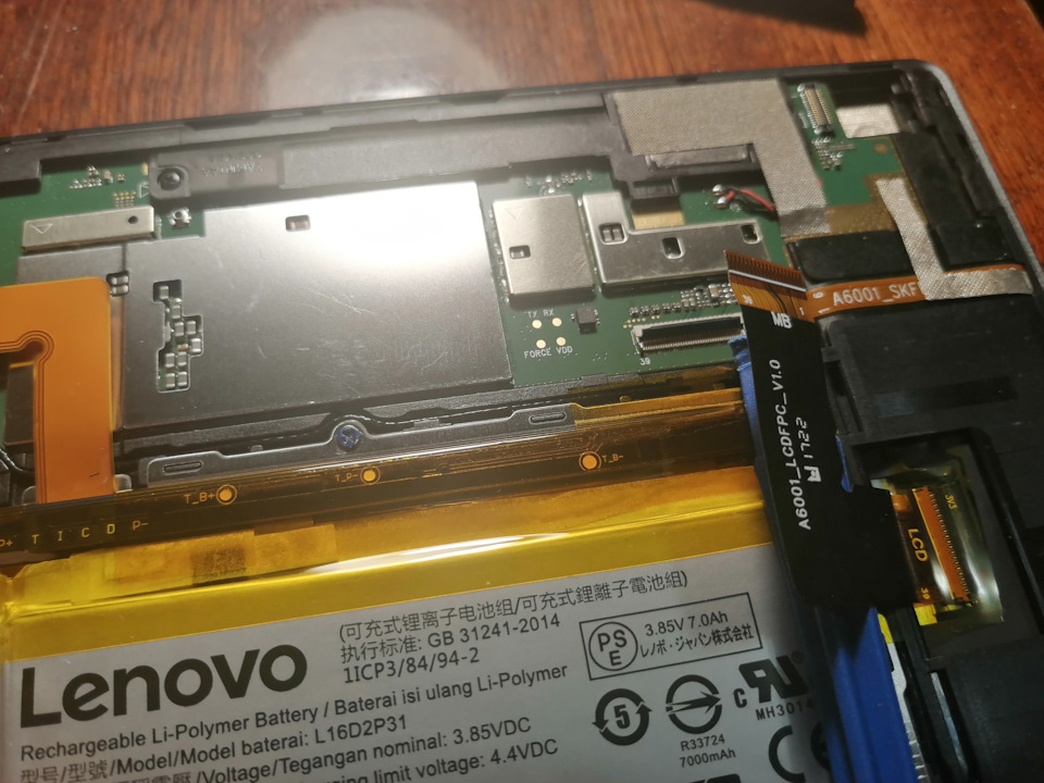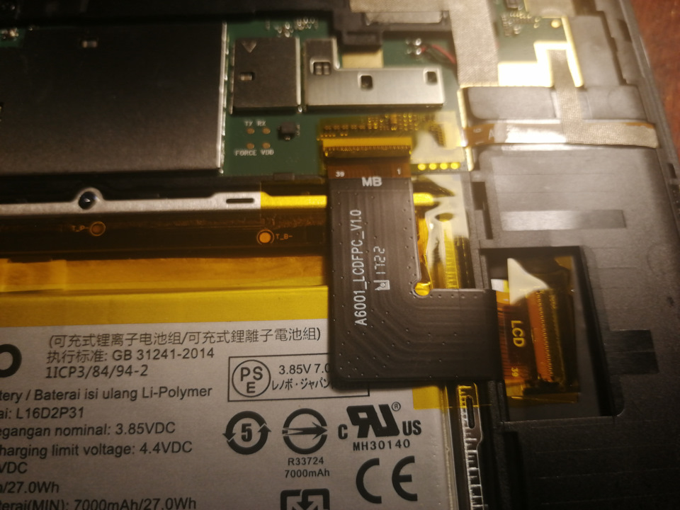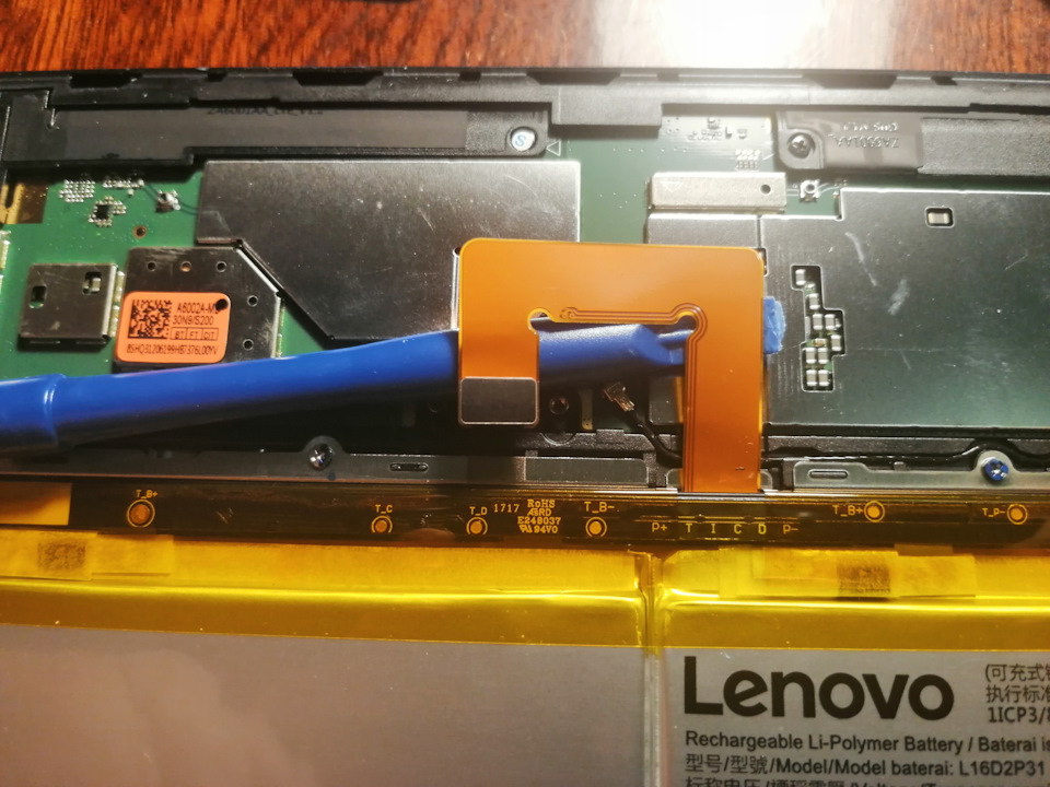 Я начал думать, как удалить ленту; отрывать дисплей было рискованно, так как он мог быть поврежден. Лучшей идеей было взять пластиковый крючок для вязания и подцепить им ленту, чтобы вытащить ее из-под дисплея, но у меня его не было; я использовал деревянную палочку для суши, оторвал ленту от экрана, сначала немного, потом вытащил кусок ленты из-под экрана, а затем вытащил всю ленту. Теперь дисплей можно легко снять (отсоединить разъем) и отложить в сторону.