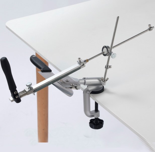 А это простой, но невероятно полезный ручной станок для правильно заточки ножей. Устройство позволяет установить точный угол заточки, а заточные камни можно сменять при необходимости. В комплекте со станком можно сразу приобрести заточные камни или докупить их отдельно в любой момент при необходимости.
