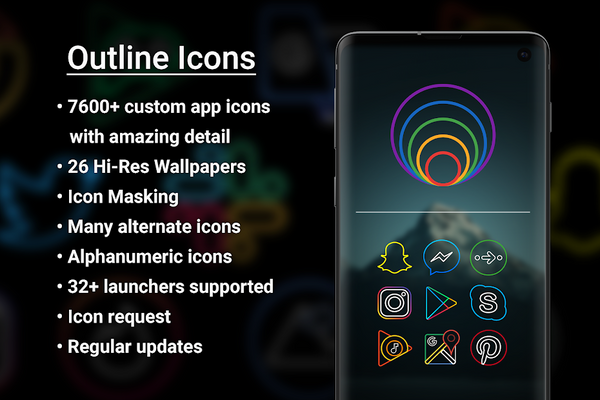 Ещё один пакет стильных иконок, доступных бесплатно для вашего телефона. И они прекрасно смотрятся и на тёмном, и на цветном фоне.