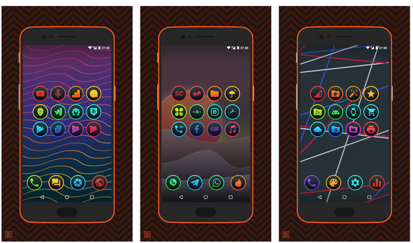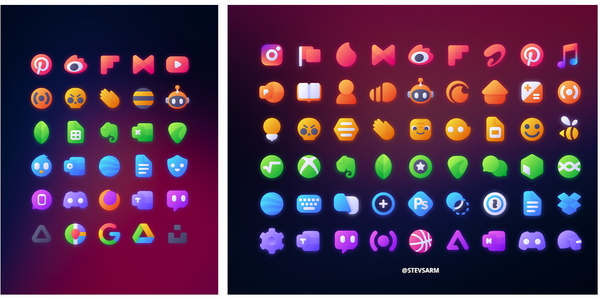 Шикарный набор с невероятно яркими, неоновыми иконками. Если вы больше любите мрачные обои, то эти иконки вам определённо понравятся, так как они круто смотрятся на тёмном фоне.