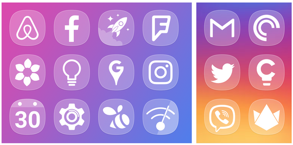 Очень красивый комплект иконок, которые буквально светятся изнутри. Белые значки с прозрачными краями — выглядит круто!