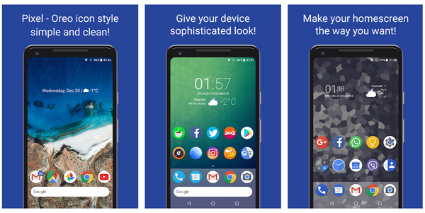 Pixel — набор иконок в стиле Pixel Launcher. Все значки круглые — те, которых нет в паке, заливаются белым цветом.