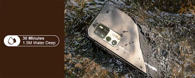 Корпус телефона андроида размером 163,8 x 81,6 x 14,2 мм и весом в 328 г защищен по стандартам IP68/IP69, что позволяет без помех ронять его на твердые поверхности с высоты и мыть водой. Аппарат не боится высоких и низких температур, пыли, влаги и грязи. Для изготовления ударопрочного смартфона использован износостойкий стеклопластик, бока укомплектованы металлическими вставками и прорезиненным покрытием. В этой модели защитные бортики присутствуют на лицевой и тыльной стороне.