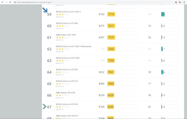Я составил сводную таблицу, по которой мне было проще ориентироваться. В итоге мой выбор пал на gtx 950, так как по соотношению производительность и цена она была лучшей.