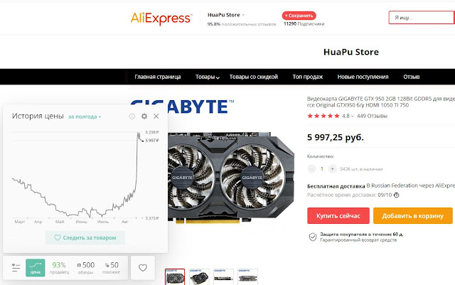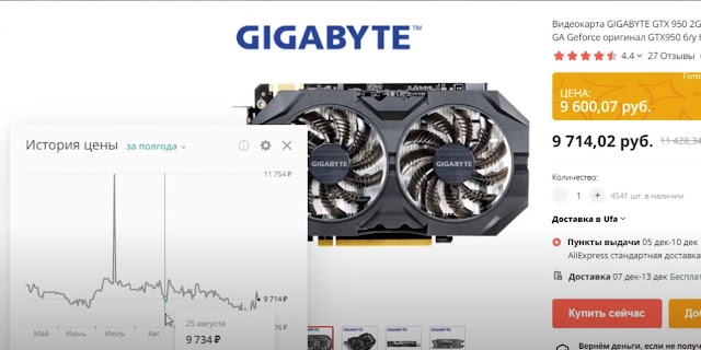 Теперь о ценах на видеокарты! В октябре 2018 года цены на GTX 950 были в среднем около 6100 рублей, в ноябре многие продавцы снизили цены до 5900 рублей, а в конце декабря 2018 года цены упали до 4500 рублей.