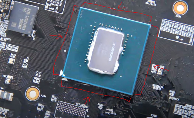 Еще желательно со всех сторон посмотреть подложку чипа, так как могут быть остатки несмытого флюса, это будет говорить о том что был ремонт или реболлинг чипа.