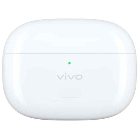 Зарядный кейс наушников выглядит вполне стандартно — небольшой кусочек гальки вытянутой формы. На его лицевой стороне есть индикатор зарядки, под которым расположены логотип vivo и плоская кнопка для сопряжения наушников.