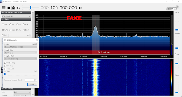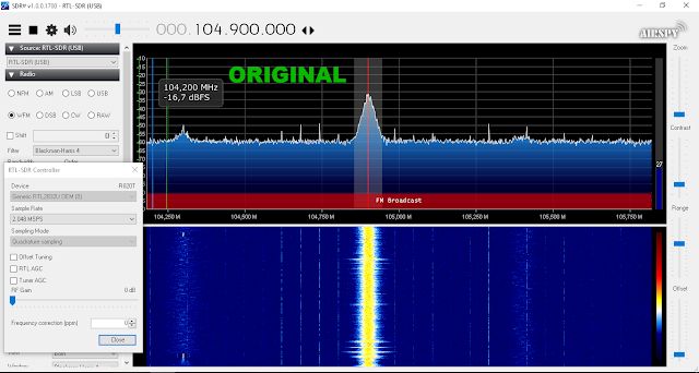 На верхней картинке видно, что установлена частота 104.9 МГц, но сигнал находится на несколько кГц ниже. Оригинальный V3 такой проблемы не имеет.