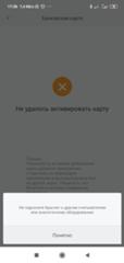Подумал, что ничего не работает из-за того, что у меня телефон без nfc и пошёл к банкомату Сбербанка. Там приложил часы к терминалу (именно к штуке, куда карты прикладывают) и выдало примерно ту же ошибку, но снизу ещё было сообщение (скриншот 2).