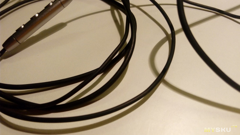 Кабель аксессуара изготовлен из кевлара, и даже через несколько месяцев использования на нем не остается и следа эксплуатации. Для большего удобства наушники оснащены микрофоном и трехкнопочным пультом управления. Аксессуар не пропускает большую часть окружающего шума, а то, что вы слушаете, слышно только вам (если вы, конечно, не включили максимальную громкость в абсолютно тихом помещении).
