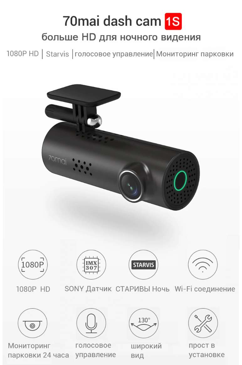 Во время движения концентрация водителя на дороге жизненно важна. Xiaomi 70mai Dash Cam 1S освобождает своего хозяина от необходимости отвлекаться от движения, вы можете управлять видиорегистратором без рук, при помощи голоса. Основные команды будут распознаны устройством и включены при помощи настроенных алгоритмов. Удобство будущего с вами уже сегодня.