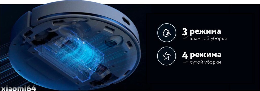 Робот-пылесос получил функцию влажной уборки: заливаете воду в резервуар 0,2 л, надеваете тряпку на щетку и запускаете уборку, перед этим установив нужный режим. Гаджет сам будет следить за расходом воды и влажностью тряпки.