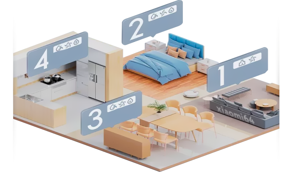 Используйте приложение Mi Home для удаленного управления. Поддерживайте порядок в доме, где бы вы ни находились. Приложение поможет указать область уборки, настроить автоматическое расписание, создать виртуальные запретные зоны для сухой и влажной уборки.