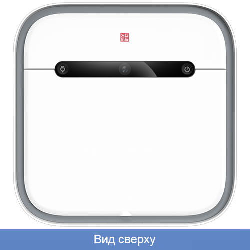 На лицевой панели робота-полотёра находится горизонтальная линия экрана, по центру — камера для навигации. По бокам расположены две сенсорные кнопки для запуска в работу и принудительного направления на док-станцию.